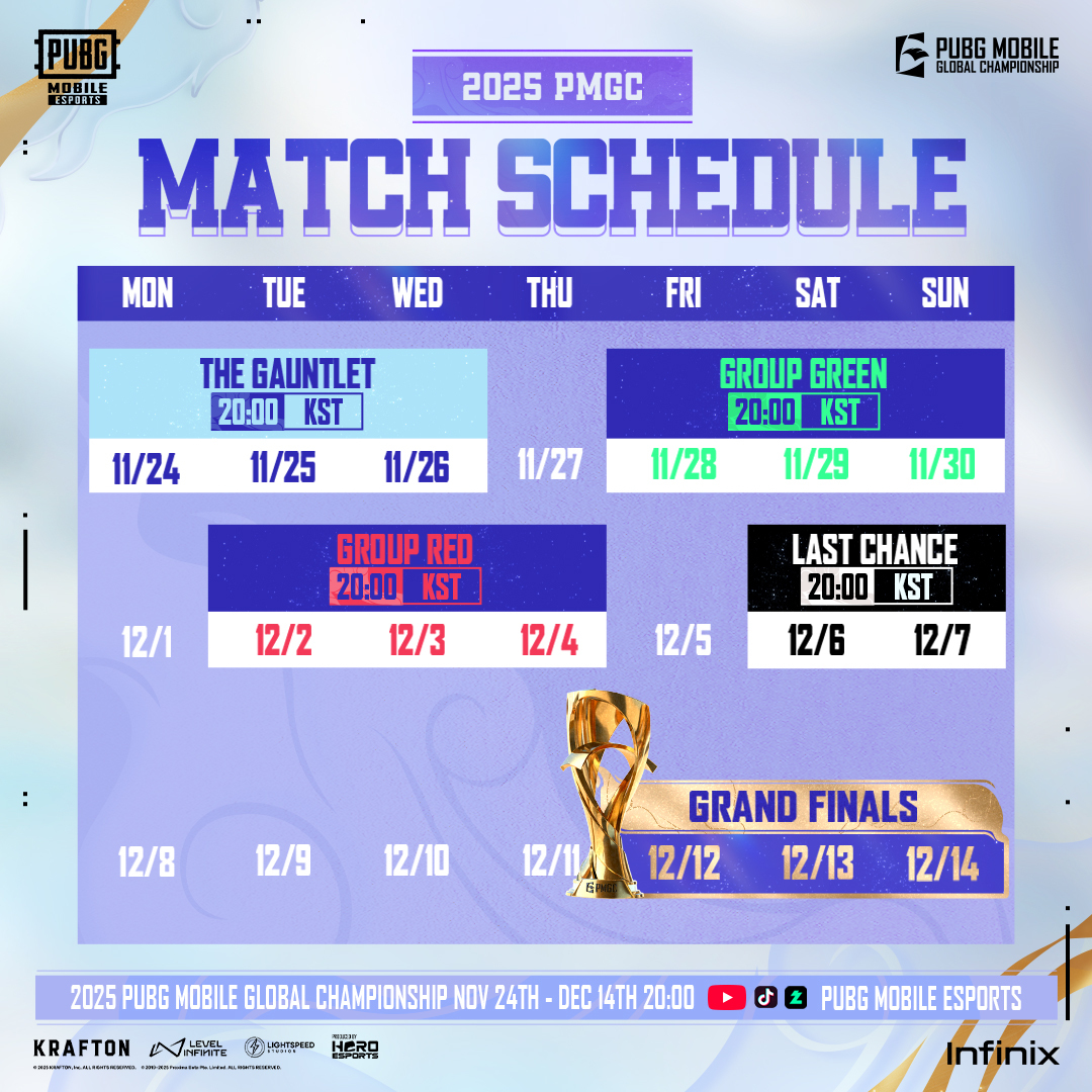 3주간 펼쳐지는 2025년 배틀그라운드 모바일 이스포츠의 최종장, 2025 PMGC의 대회 구조와 일정을 안내드립니다.